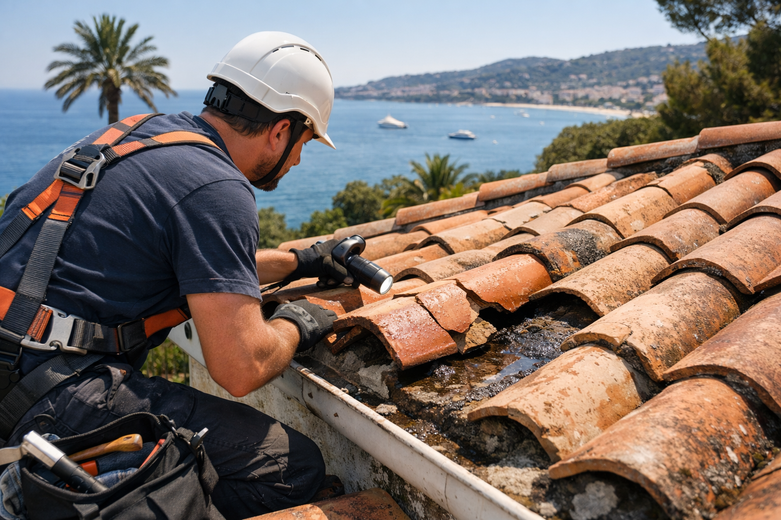 À Cannes comme à Nice, vent, pluies et embruns peuvent provoquer une infiltration toiture. Plus on attend, plus l’isolant et la charpente souffrent.