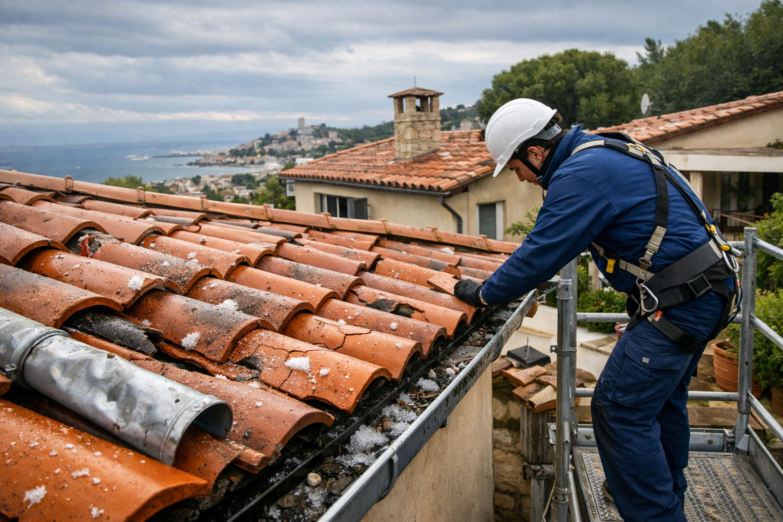 Si vous suspectez un impact (tuiles fissurées, zinguerie touchée, traces d’eau), le plus sûr est de faire réaliser un contrôle et, si besoin, une mise hors d’eau.